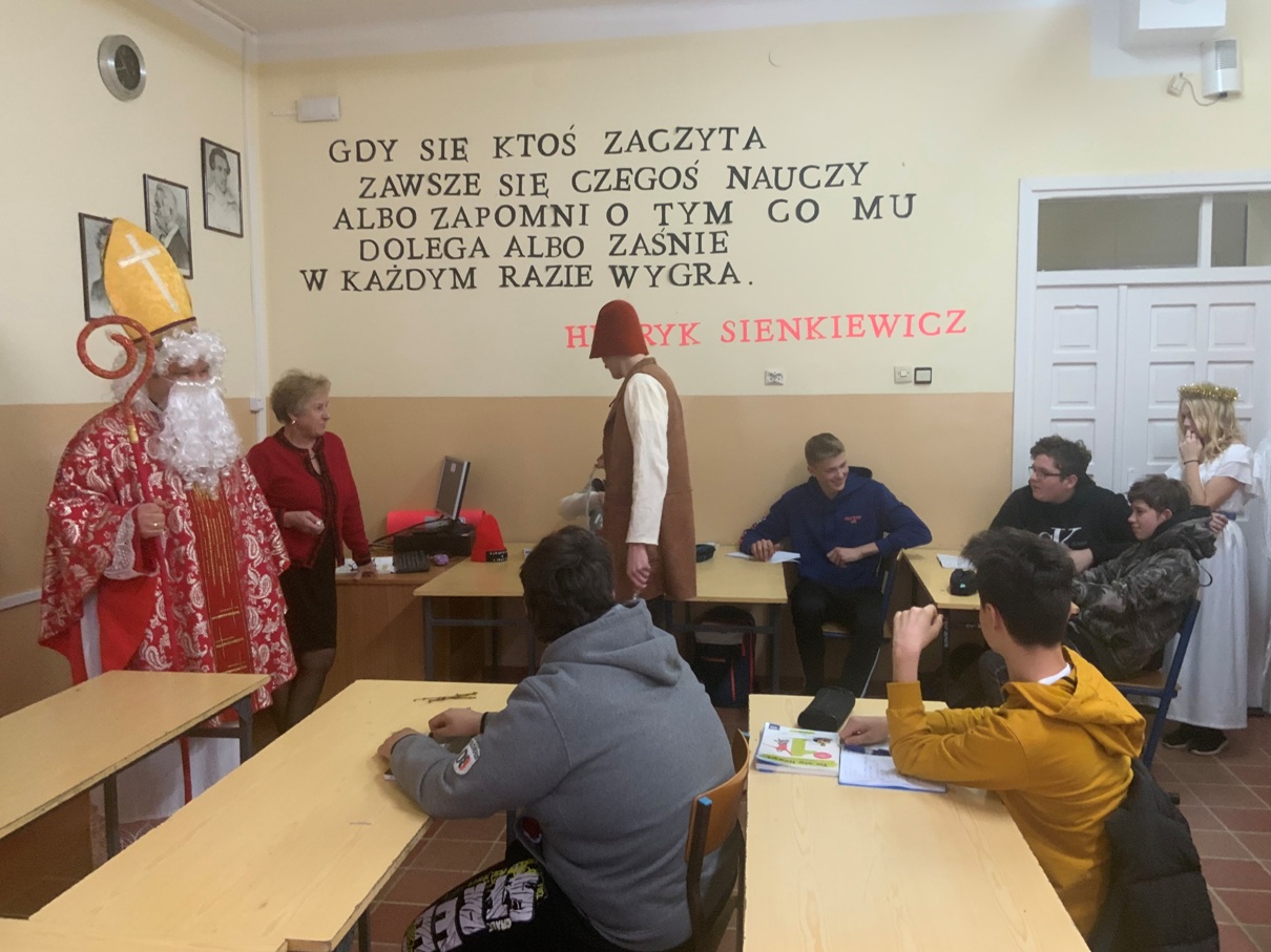 6 grudnia naszą szkołę odwiedził św. Mikołaj wraz z pomocnikami. Wszystkie grzeczne dzieci obdarował słodkościami. Do pomocy św. Mikołajowi zaangażowani zostali członkowie Samorządu Uczniowskiego. Mikołaj przeszedł również ulicami Żabna, obdarowując słodyczami mieszkańców miasta, pracowników instytucji i lokali handlowych. Wizyta Świętego sprawiła wiele radości zarówno uczniom jak i uczącym, zwłaszcza że św. Mikołaj tym razem nie rozdawał rózg.