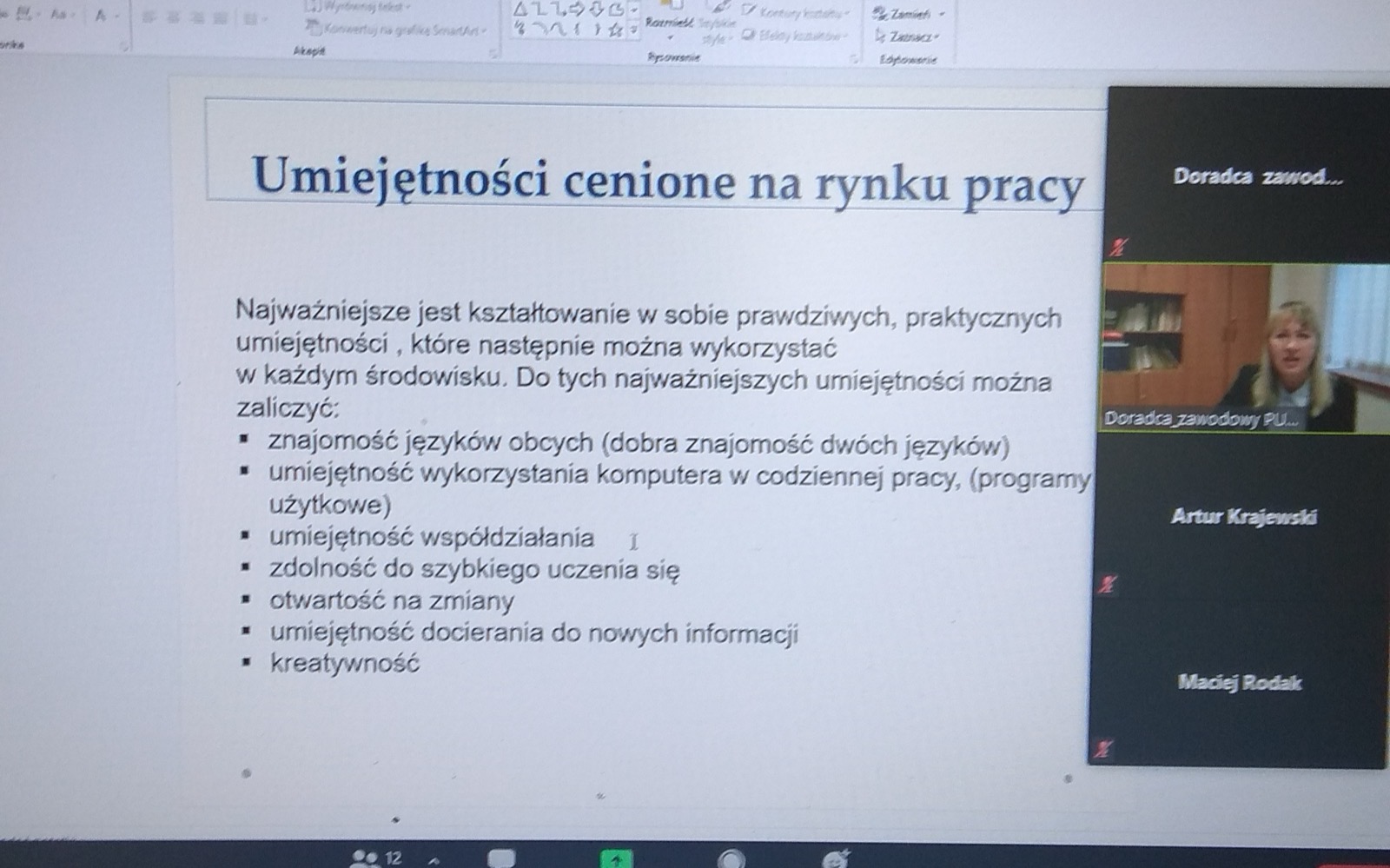 15 kwietnia 2021 r. na platformie Microsoft Teams uczniowie klasy 3b i IVTEHG uczestniczyli w spotkaniu z przedstawicielem Powiatowego Urzędu Pracy w Tarnowie.