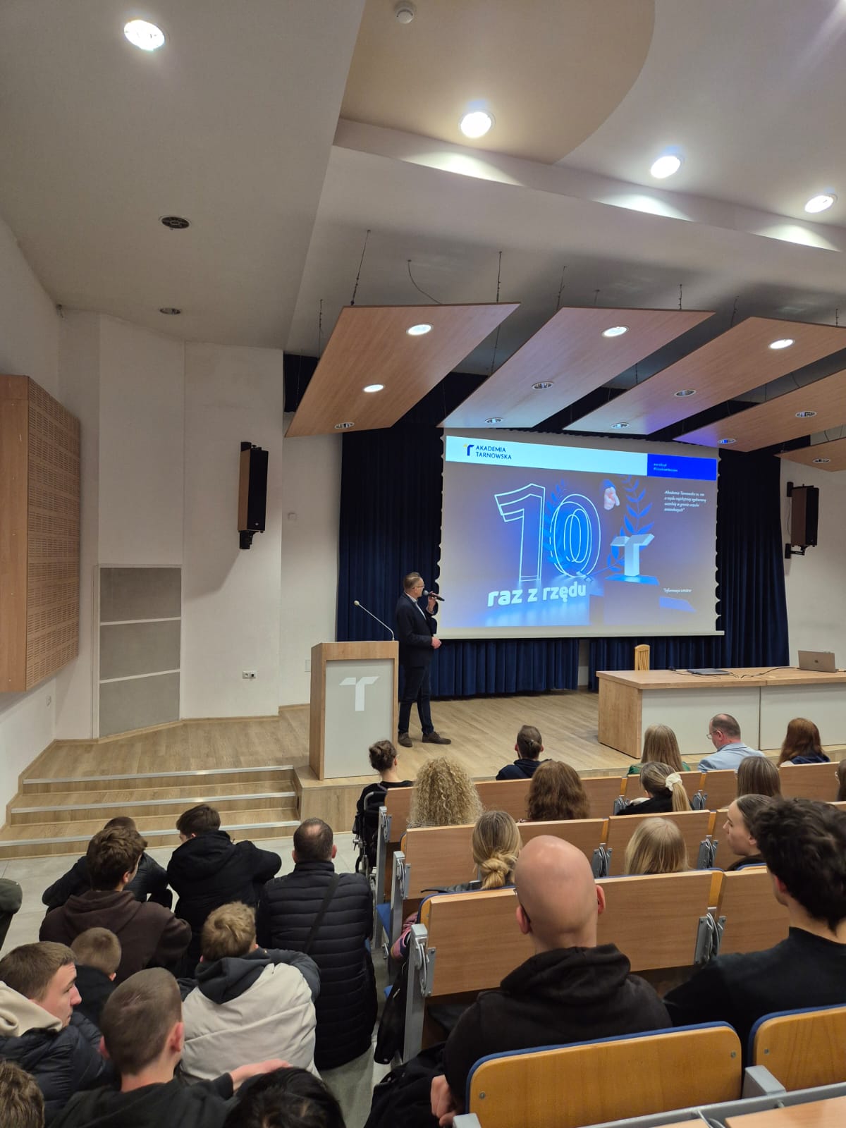 W dniu 2.04.2025 r. uczniowie klasy 3TI wzięli udział w Dniach Otwartych Akademii Tarnowskiej. Podczas wizyty uczestniczyli w wykładzie dr. inż. Daniela Króla, prof. AT, pt. „Od maszyn do myślących systemów – rewolucja inteligentnych technologii”, który przybliżył im temat rozwoju sztucznej inteligencji. Mieli również okazję zapoznać się z makietą inteligentnego miasta oraz poznać bogatą ofertę edukacyjną uczelni. Wyjazd był cennym doświadczeniem i inspiracją do dalszego rozwoju.