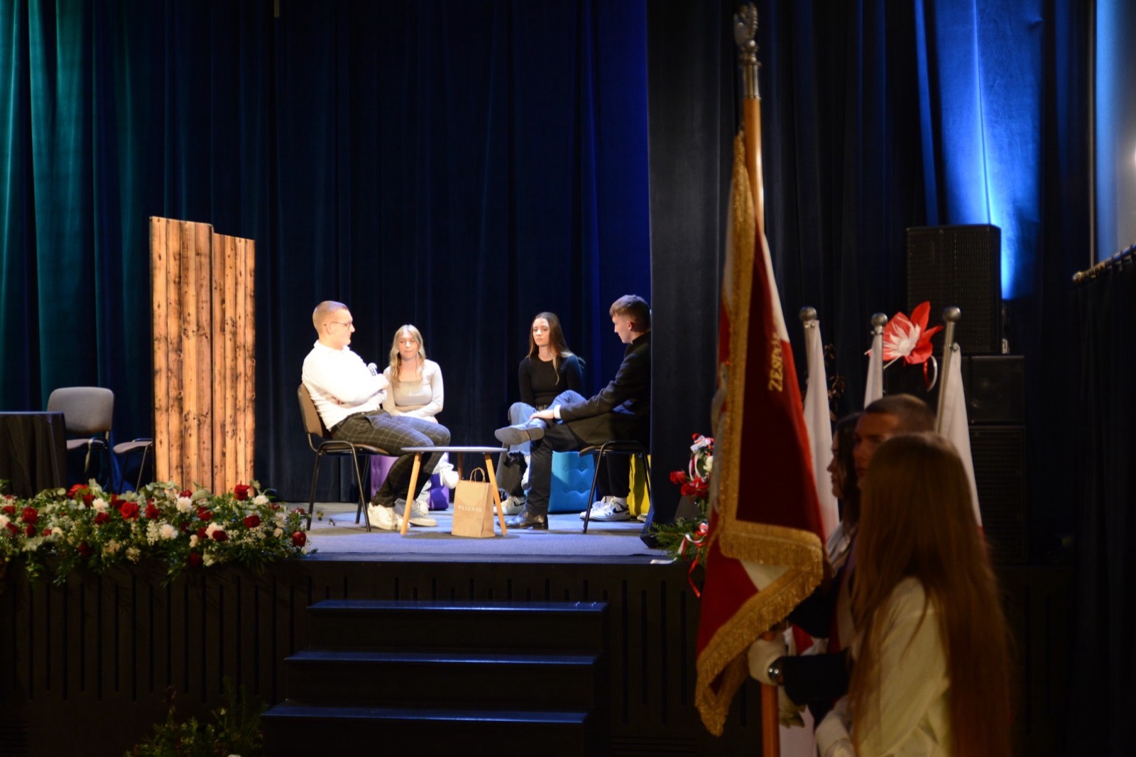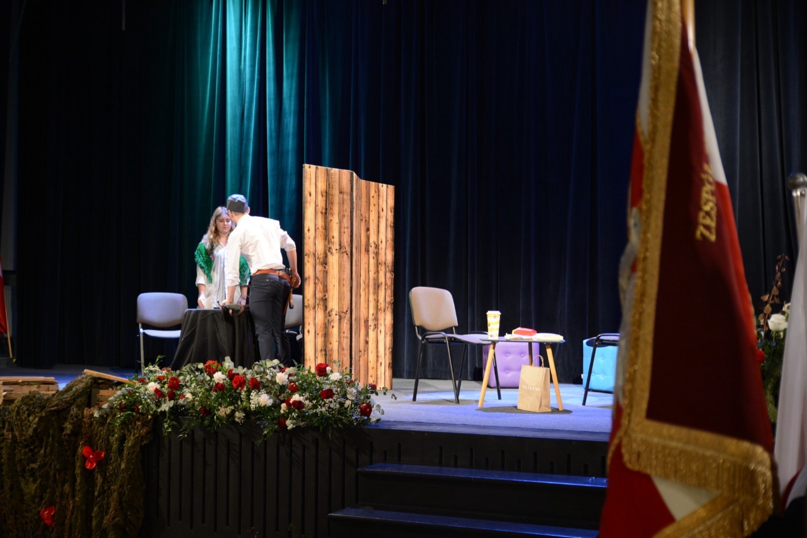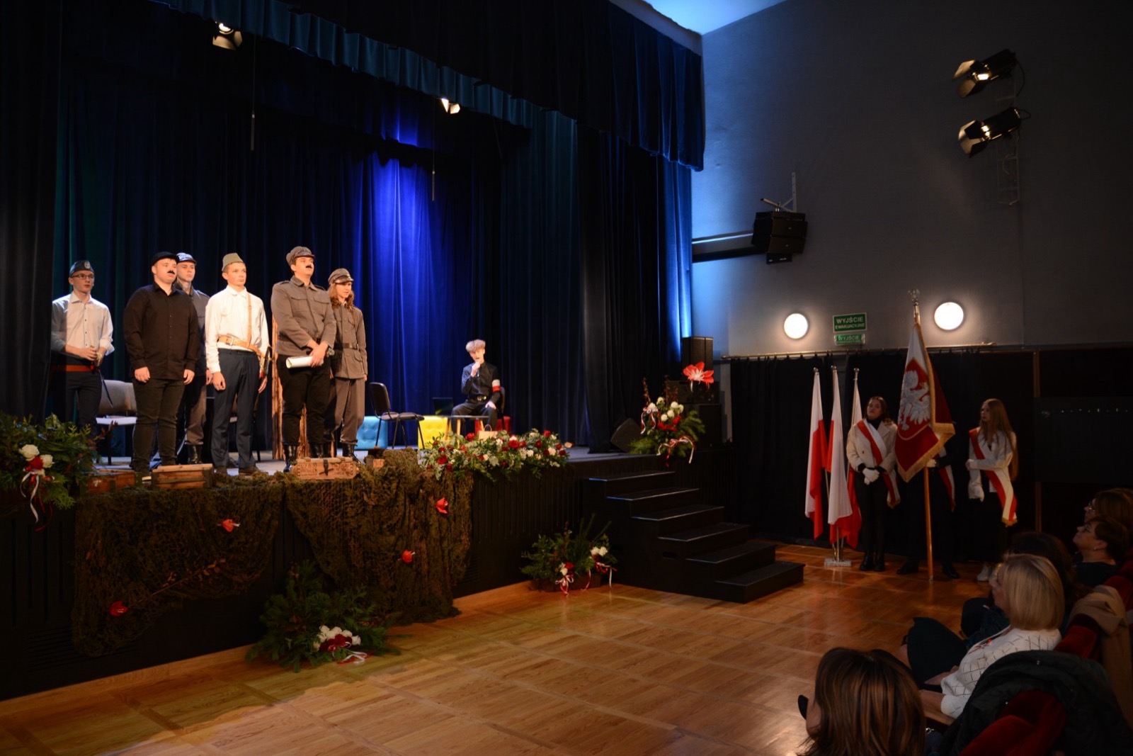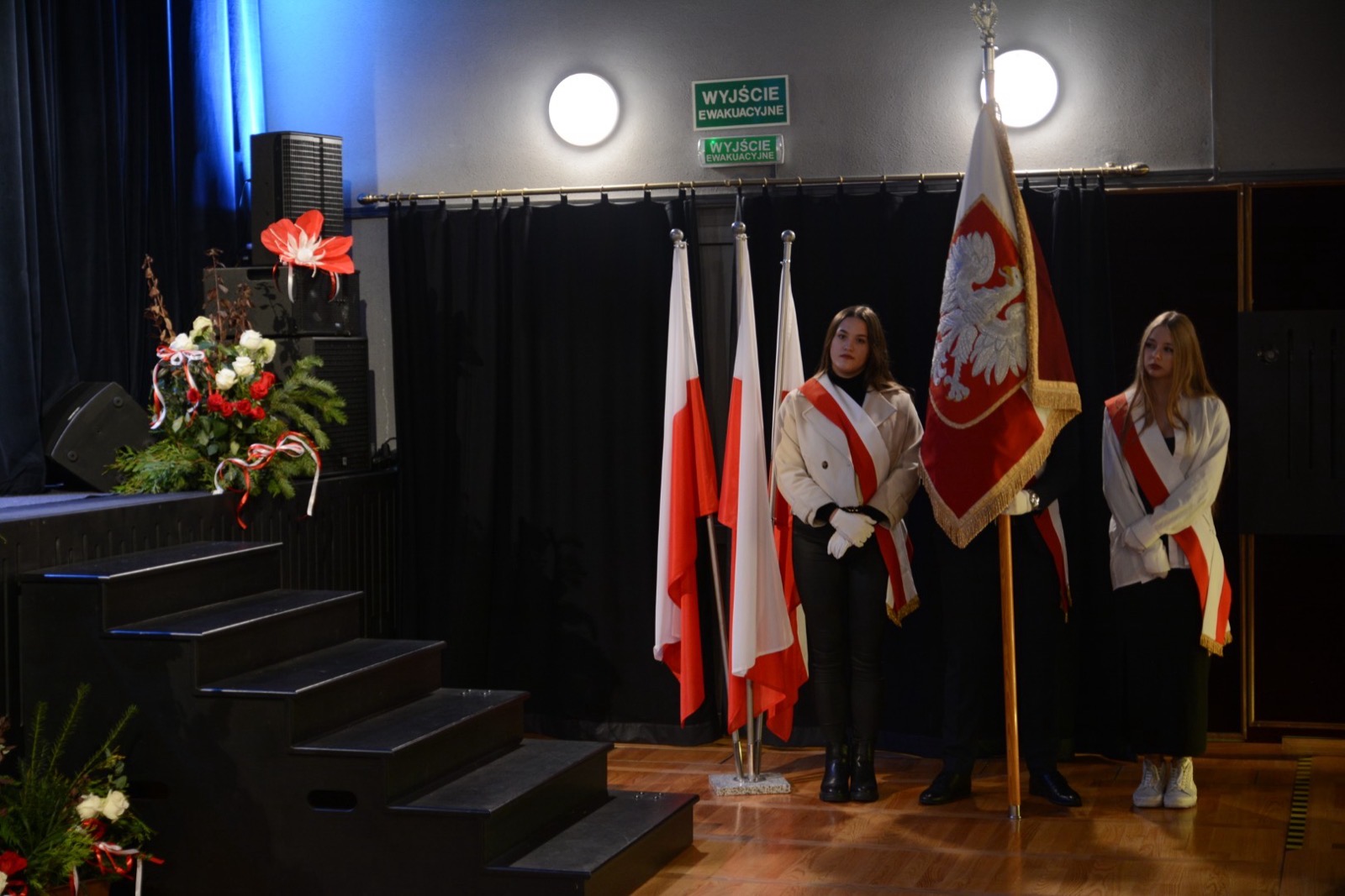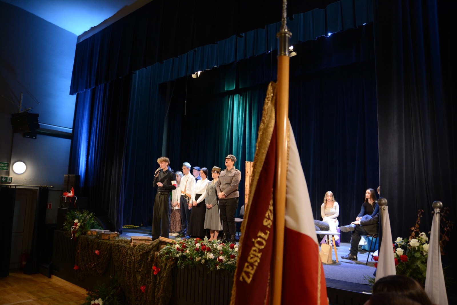 Społeczność szkolna uczestniczyła również w akademii z okazji Święta Niepodległości zorganizowanej w Gminnym Centrum Kultury w Żabnie. W ramach tego wydarzenia uczniowie klas 3PE, 3TI i 1TP pod opieką nauczycieli: pani Iwony Fijał, pani Katarzyny Szwiec oraz pani Kingi Schab, przygotowali wyjątkowy spektakl, który poruszał temat polskiej niepodległości i zmieniającego się na przestrzeni lat podejścia do patriotyzmu.