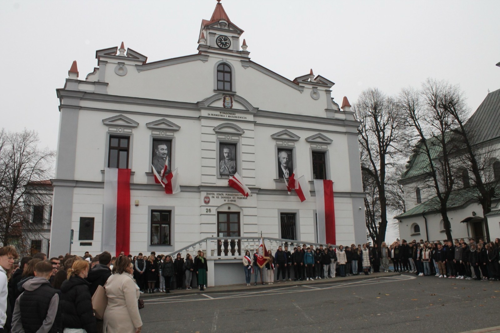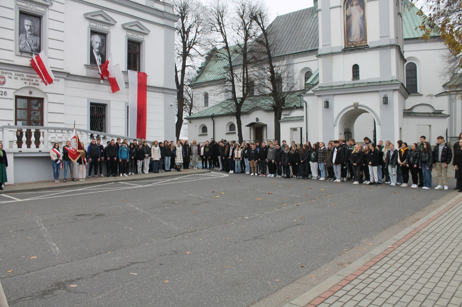 Aby uczcić Dzień Niepodległości, uczniowie Zespołu Szkół Ponadpodstawowych w Żabnie aktywnie włączyli się w narodową akcję „Szkoła do Hymnu 2024” i w poprzedzający święto piątek, o godz. 11:11, wspólnie odśpiewali przed budynkiem szkoły Hymn Polski.