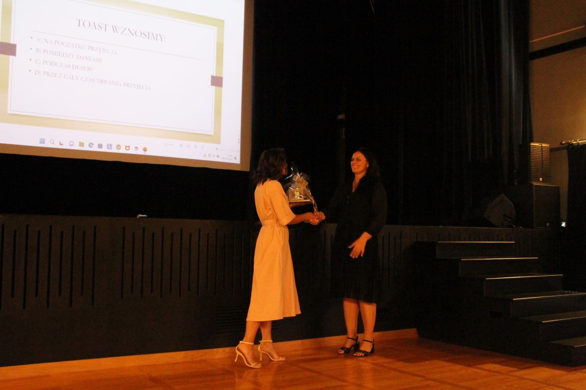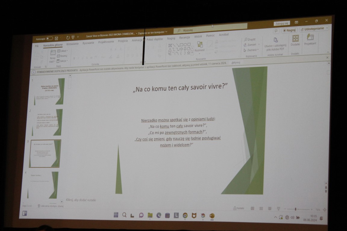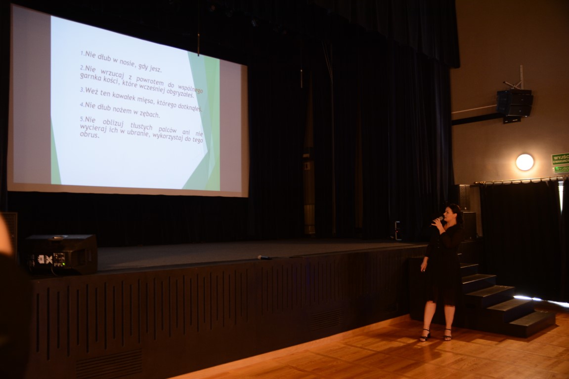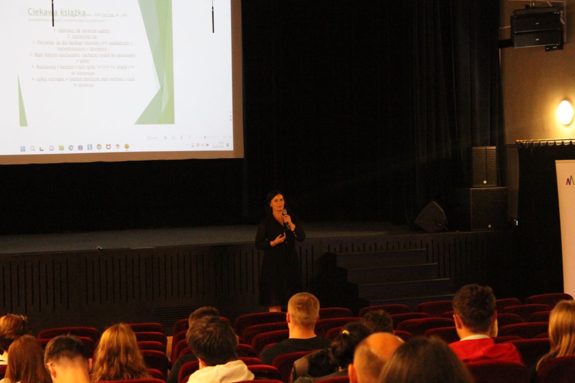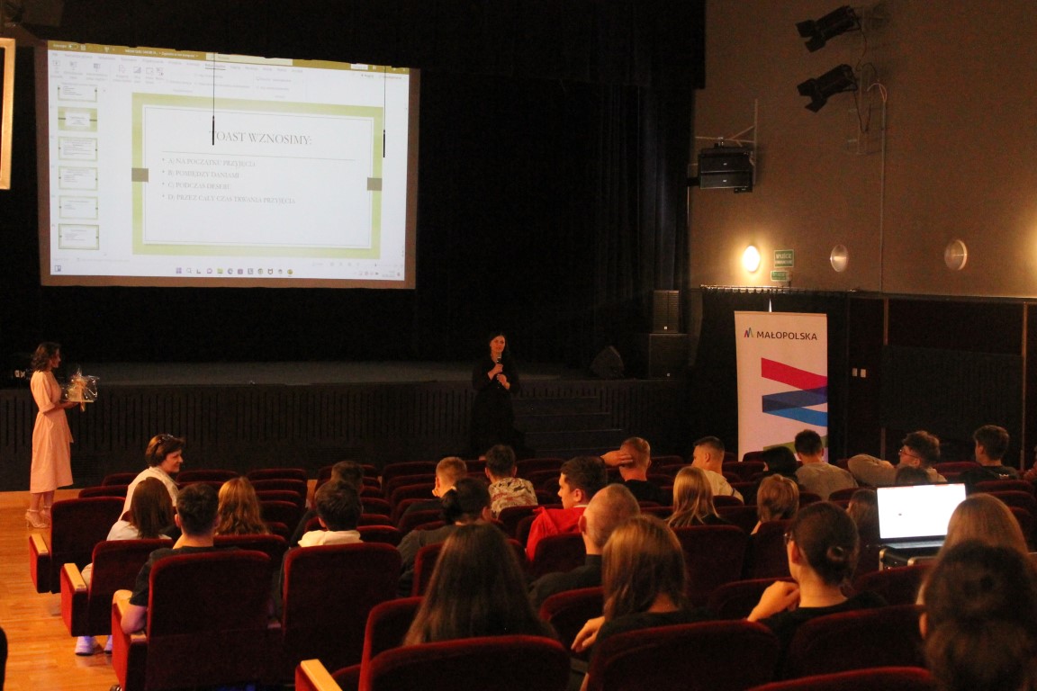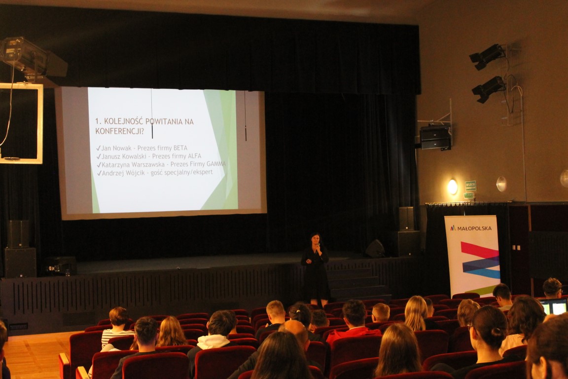 Uczniowie naszego Technikum i Branżowej Szkoły mieli wyjątkową okazję uczestniczyć w warsztatach z savoir vivre w biznesie, prowadzonych przez niezrównaną prezenterkę radia RDN, ekspertkę Mobilnej Akademii Prawa dla Dzieci i Młodzieży ZIARNO, Iwonę Chmielowską. Warsztaty były prawdziwą skarbnicą wiedzy na temat etykiety w świecie biznesu. Dowiedzieliśmy się, jak ważne są pierwsze wrażenia, właściwe zachowanie podczas spotkań oraz umiejętność budowania profesjonalnych relacji. Pani Iwona wspaniale prowadziła nas przez zawiłości savoir vivre, dzieląc się swoimi doświadczeniami i cennymi wskazówkami. Te umiejętności są kluczowe, by budować swój wizerunek w pracy, szkole i nawiązywać trwałe, profesjonalne kontakty. Polecamy wszystkim, którzy chcą podnieść swoje kompetencje w tym zakresie!