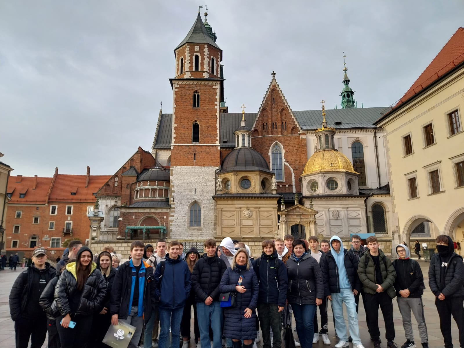Dnia 21 listopada klasy 2TGH, 2TI oraz przedstawiciele 2B wraz z wychowawcami pojechali na wycieczkę przedmiotową do Krakowa. Wycieczkę rozpoczęliśmy od spaceru po Krakowie . Zobaczyliśmy Rynek Kościół Mariacki Collegium Maius, ogród pamięci pomordowanych profesorów z UJ oraz zachwycające witraże Wyspiańskiego w bazylice św Franciszka z Asyżu. Korzystając z możliwości darmowego zwiedzania zamku królewskiego na wzgórzu Wawelskim mieliśmy okazję zobaczyć wystawę”Obraz złotego wieku- złoty zamek Jagiellonów”Ekspozycja przeniosła nas do epoki renesansu na wszystkich możliwych płaszczyznach oraz uzmysłowiła nam potęgę naszego kraju oraz niesamowity rozwój nauki techniki i sztuki. Listopad w Krakowie pozytywnie nas zaskoczył chwilami ze słońcem. Wycieczke zogrganizowała Katarzyna Potempa