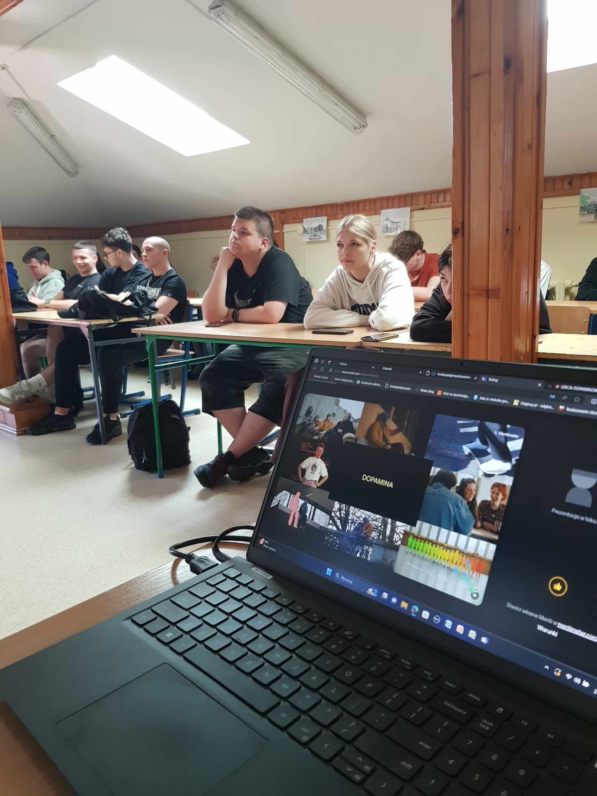 Uczniowie klasy 3TGHI wzięli udział w lekcji online pn. "DOPAMINA – jak budować dobre relacjach rówieśnicze, a stawiać granice w tych toksycznych" prowadzonej przez Zuzannę Elbert-Stelmach- specjalistkę ds. edukacji z Fundacji Dajemy Dzieciom Siłę.