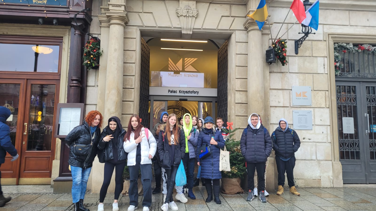 Dnia 14.12.2023r. klasa 2a SB wraz z wychowawcą panią Anną Rygielską oraz panią Katarzyną Potempą, w ramach prezentu od św. Mikołaja, pojechała na wycieczkę do Krakowa. Uczniowie mieli przyjemność podziwiać Jarmark Bożonarodzeniowy, Ołtarz Wita Stwosza w Kościele Mariackim oraz witraże Stanisława Wyspiańskiego w kościele o.o. Franciszkanów. W świątecznej atmosferze spacerowali po Rynku, a następnie zobaczyli piękną wystawę słynnych Szopek Krakowskich w Muzeum Miasta Krakowa. Wycieczkę zakończył seans filmowy w Kinie pod Baranami, gdzie zobaczyli film pt. "Siła naszych marzeń”.