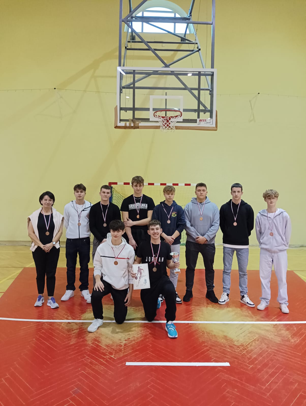 Uczniowie z naszej szkoły, w dniu 13 grudnia 2023 roku brali udział w Mistrzostwach Powiatu w Koszykówce Chłopców w ramach Liecealiady w Zakliczynie. W Turnieju uczestniczyło osiem szkół z Powiatu Tarnowskiego. Mecze prowadzone były w dwóch grupach. Po zaciętej i bardzo wyrównanej walce zajęliśmy III miejsce. Skład drużyny to: Marcin Pojasek, Jakub Góral, Karol Motylski, Michał Kucia, Jakub Ślipek, Filip Czosnyka, Nikodem Liro, Bartłomiej Kozioł, Daniel Pytka. Gratulacje dla naszych chłopaków !!!!!