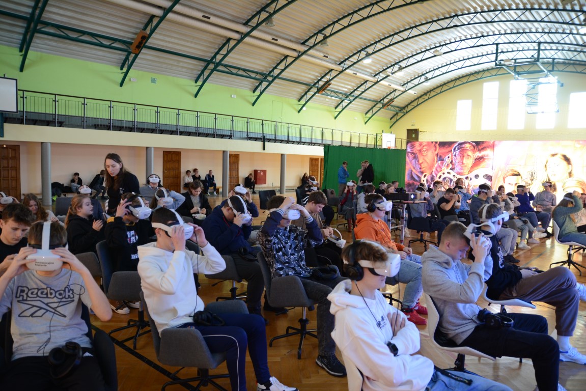 W dniach 4 i 5 grudnia nasza Szkoła realizowała projekt: Innowacyjna historia- nowe technologie w służbie edukacji. Dzięki wsparciu Ministerstwa Edukacji i Nauki, fundacja Arte et Marte z Warszawy zainstalowała na hali gimnastycznej mobilne kino, gdzie w technologii wirtualnej rzeczywistości (gogle VR) mogliśmy zobaczyć dwa filmy historyczne: "Wiktoria 1920" (wojna polsko-bolszewicka) oraz "Kartka z powstania" (powstanie warszawskie). W 6 seansach filmowych uczestniczyło ponad 400 uczniów i nauczycieli, korzystając z możliwości jakie daje technologia wirtualnej rzeczywistości. Na nasze zaproszenie, jako szkoły- gospodarza, odpowiedziało kilka szkół podstawowych z terenu naszej gminy. Dziękujemy Dyrekcji, nauczycielom i uczniom klas VII i VIII z Ilkowic, Żabna, Niedomic, Łęgu Tarnowskiego i Niecieczy za wspólne przeżycia odkrywania wydarzeń historycznych widzianych oczami ich bohaterów.