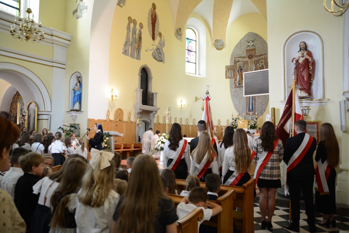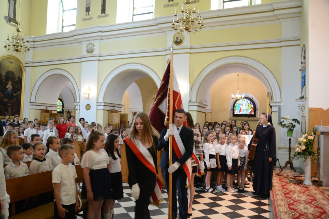 Uczniowie i nauczyciele Zespołu Szkół Ponadpodstawowych w Żabnie uroczyście podsumowali i zakończyli rok szkolny 2023/24.Uroczystość rozpoczęła się Mszą św. w kościele parafialnym w Żabnie a następnie za sztandarem wszyscy przeszli do Gminnego Centrum Kultury.