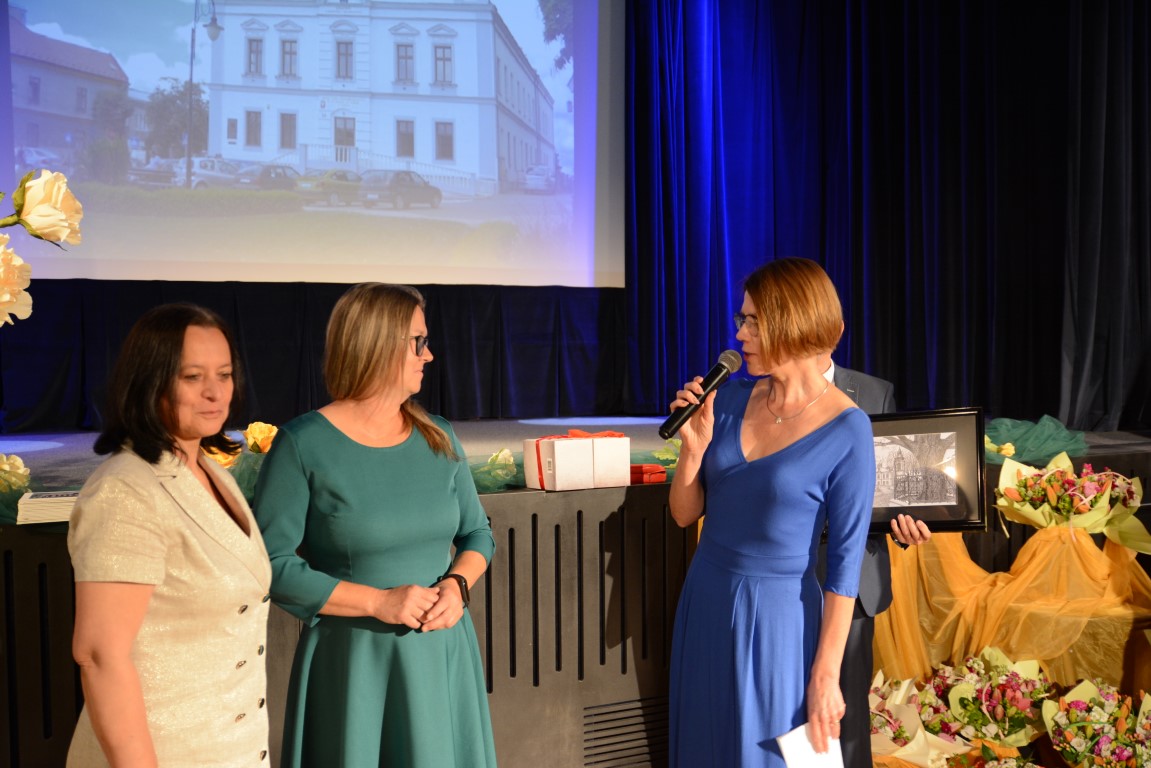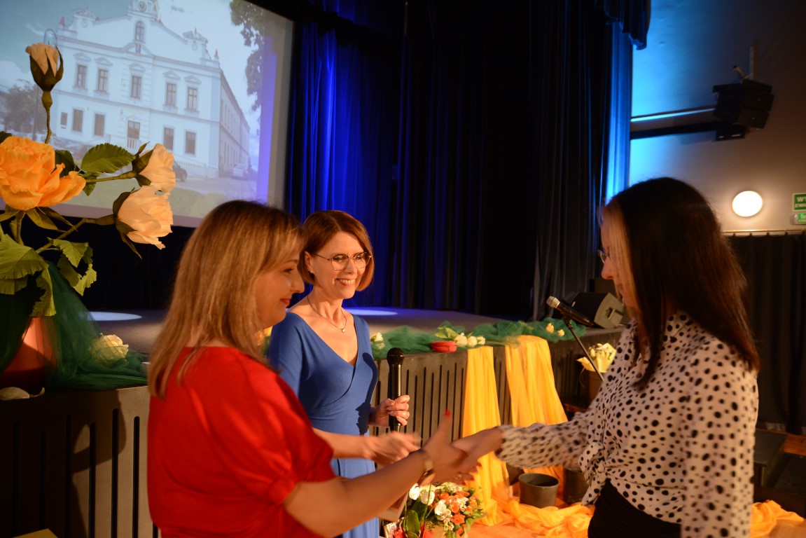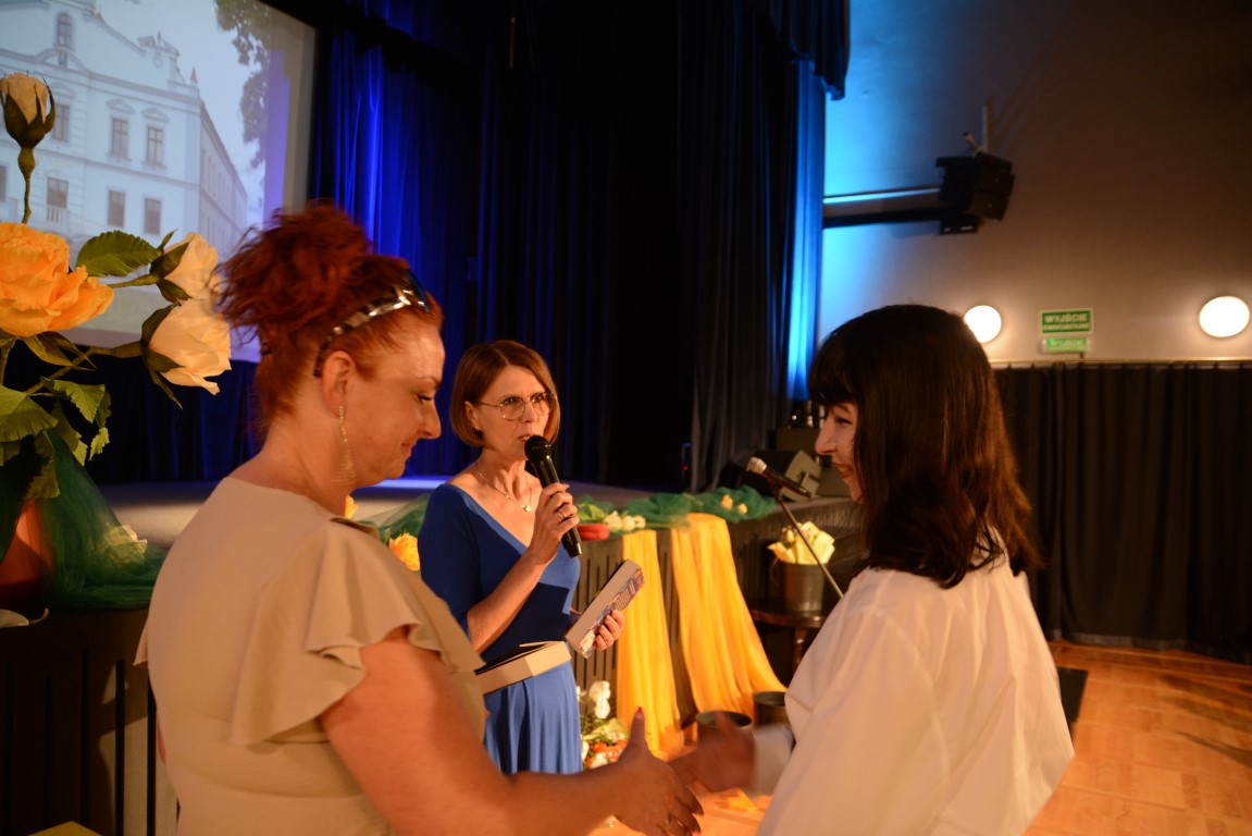 Pani dyrektor Agnieszka Kurzydym podziękowała paniom Małgorzacie Pająk i Krystynie Streb, które przeszły na emeryturę, za wieloletnią pracę w szkole i ich zaangażowanie w przekazywanie kilku pokoleniom uczniów swojej wiedzy.