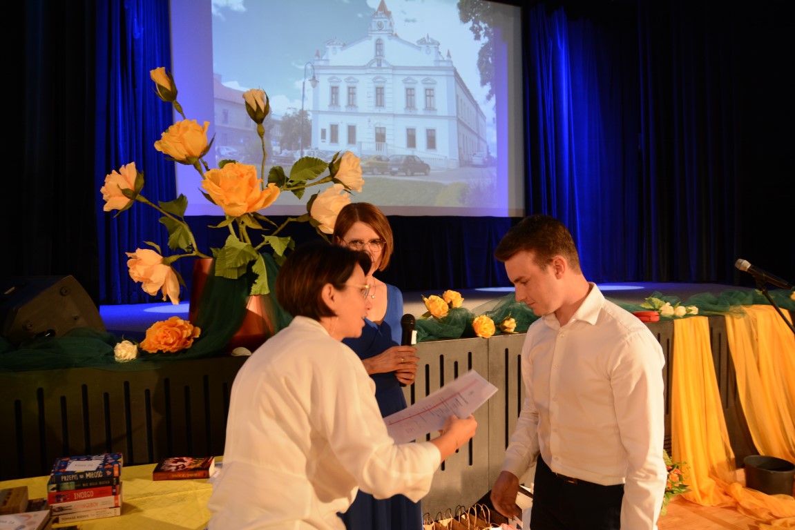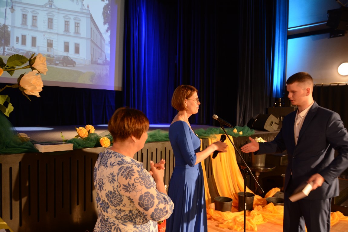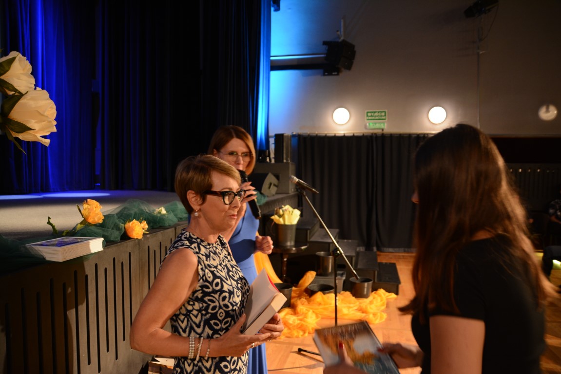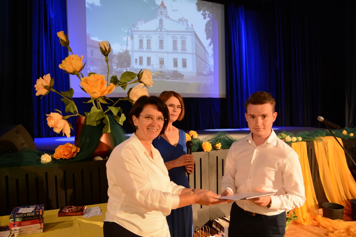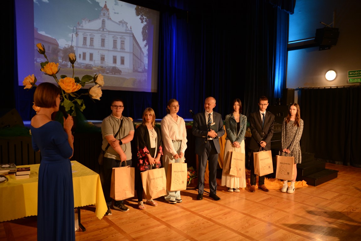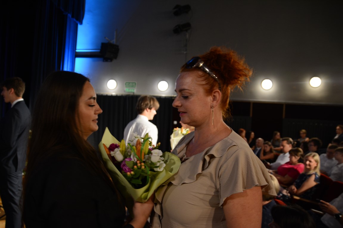 Następnie pani dyrektor wraz z wychowawcami wręczyła nagrody wyróżniającym się w mijającym roku szkolnym uczniom klas Technikum i Szkoły Branżowej oraz ogłosiła, że w bieżącym roku szkolnym kandydatem do stypendium Prezesa Rady Ministrów jest uczeń klasy 4TI Dominik Nowak.