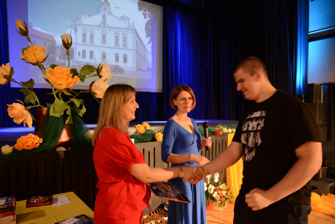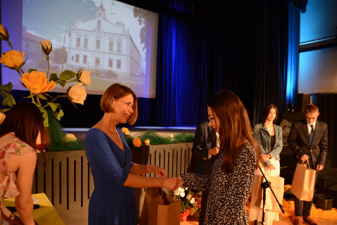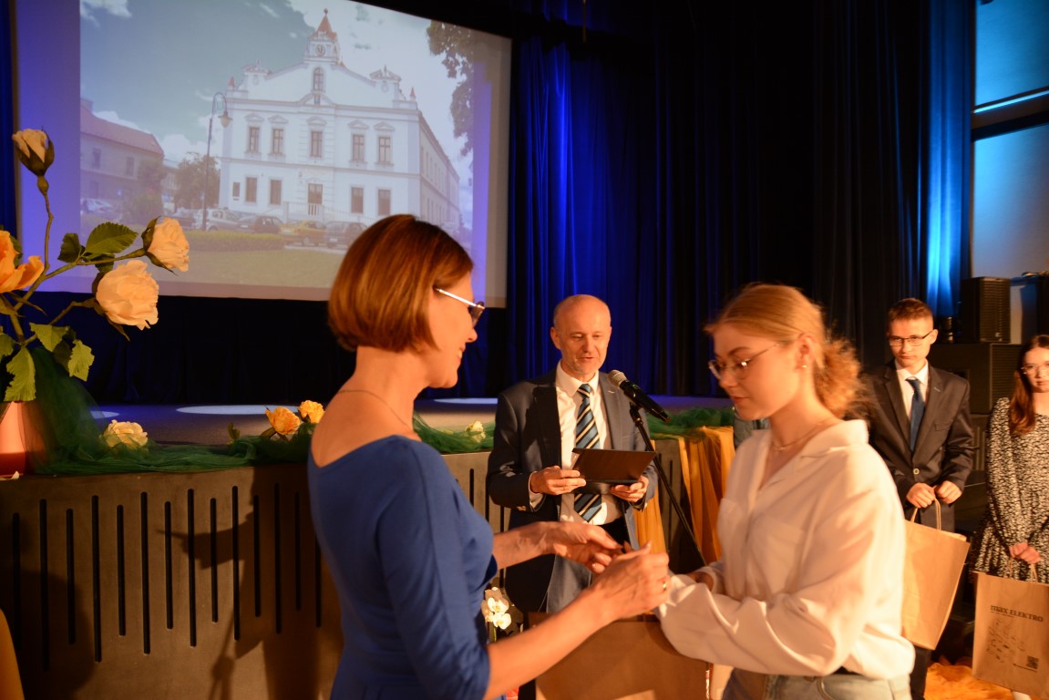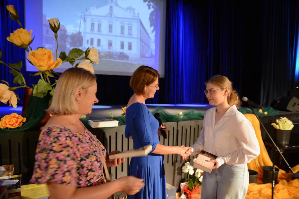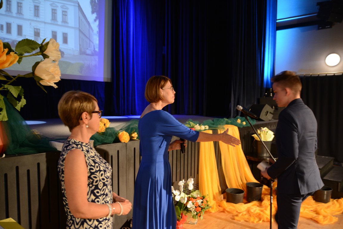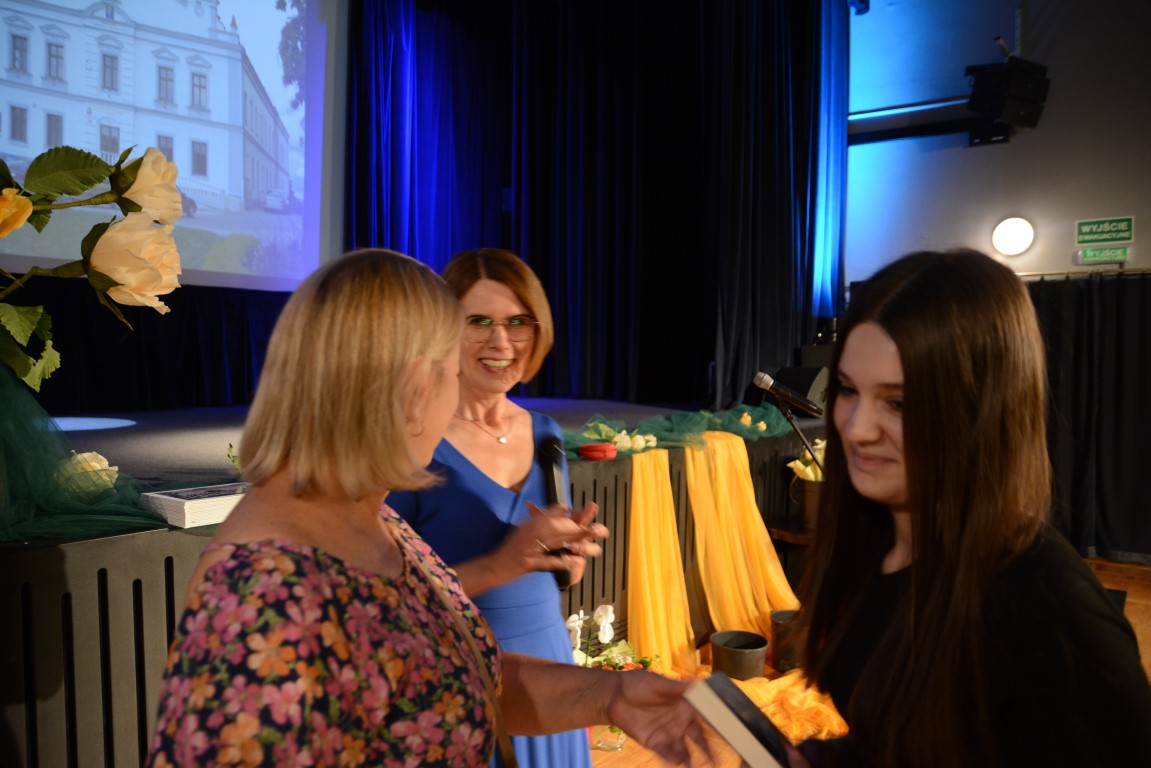 Następnie pani dyrektor wraz z wychowawcami wręczyła nagrody wyróżniającym się w mijającym roku szkolnym uczniom klas Technikum i Szkoły Branżowej oraz ogłosiła, że w bieżącym roku szkolnym kandydatem do stypendium Prezesa Rady Ministrów jest uczeń klasy 4TI Dominik Nowak.