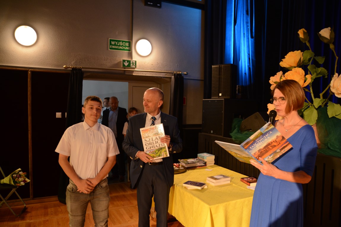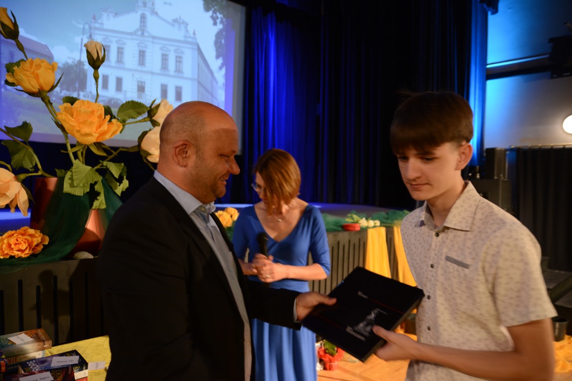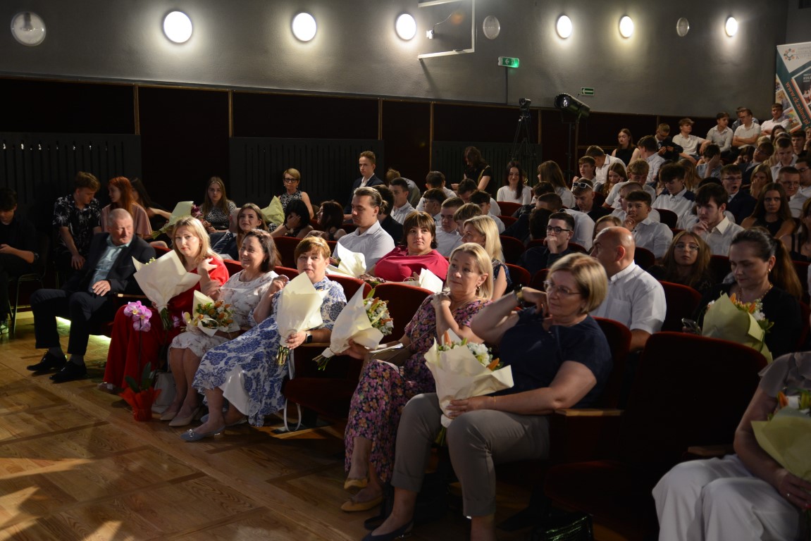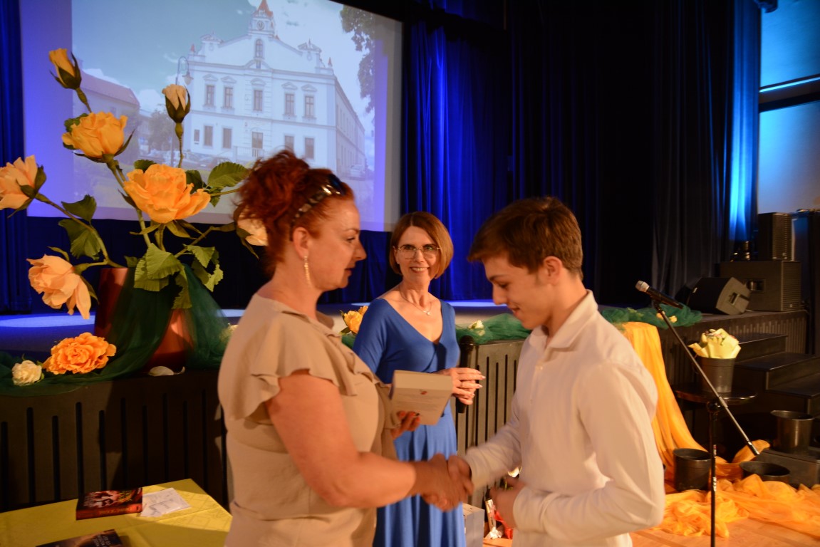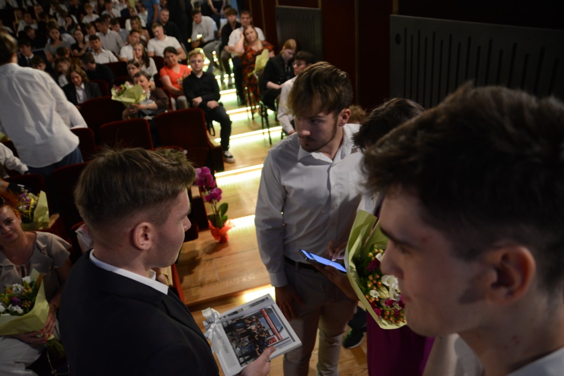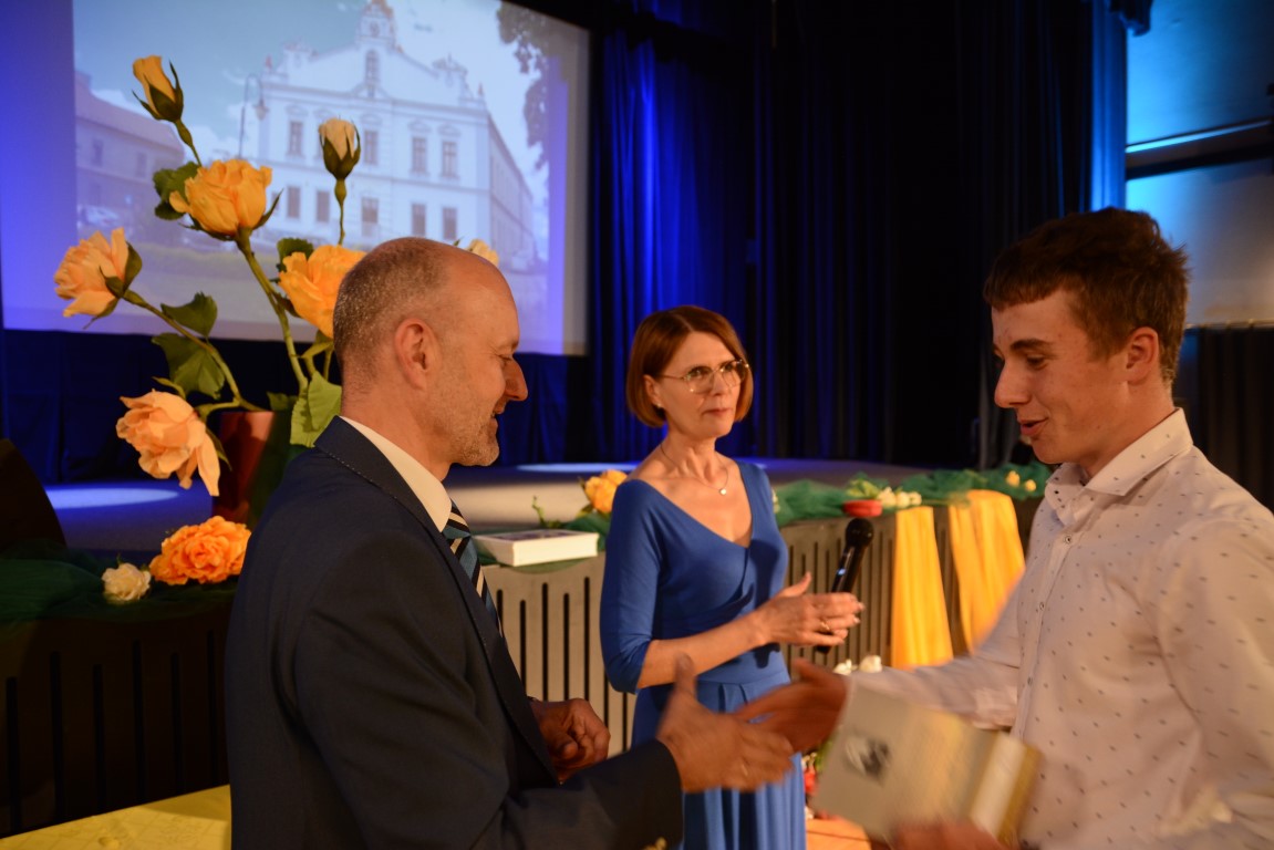Następnie pani dyrektor wraz z wychowawcami wręczyła nagrody wyróżniającym się w mijającym roku szkolnym uczniom klas Technikum i Szkoły Branżowej oraz ogłosiła, że w bieżącym roku szkolnym kandydatem do stypendium Prezesa Rady Ministrów jest uczeń klasy 4TI Dominik Nowak.