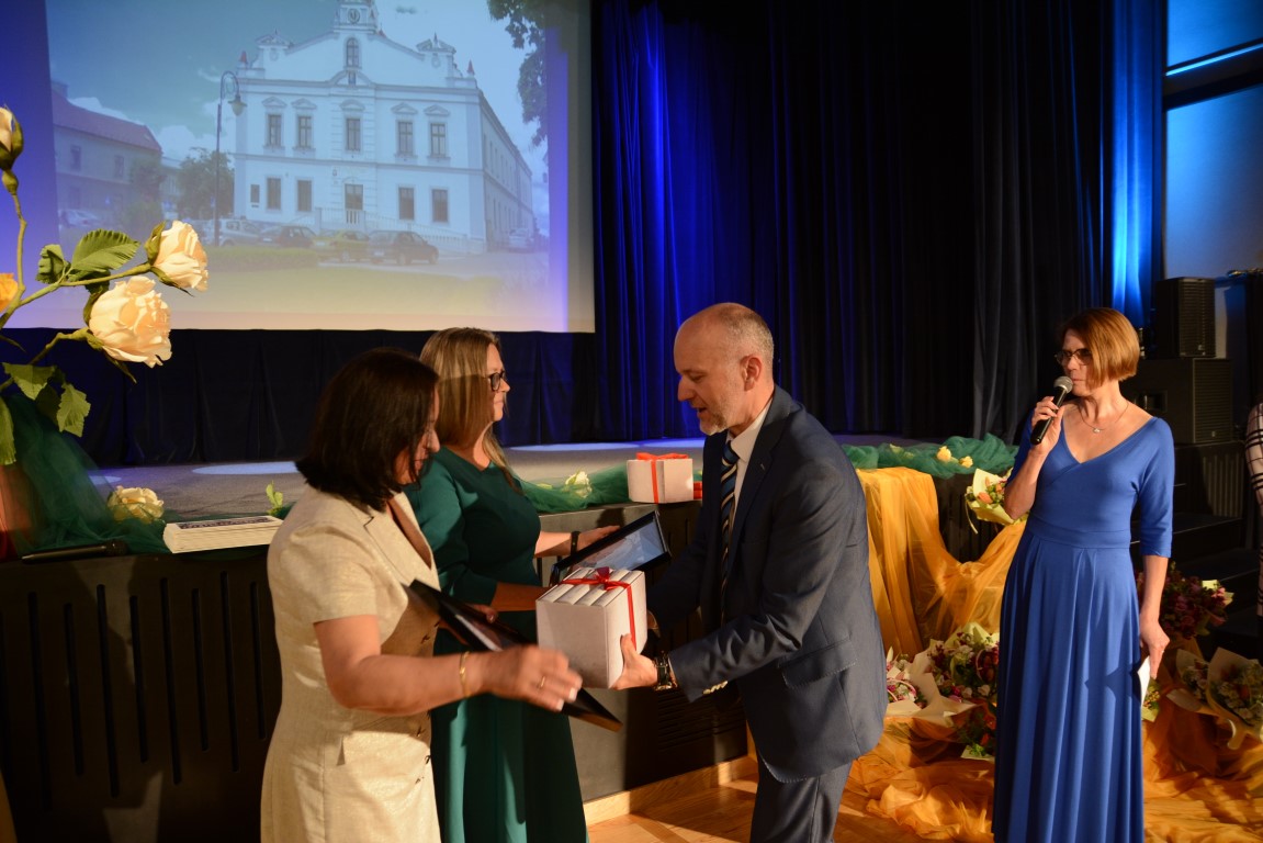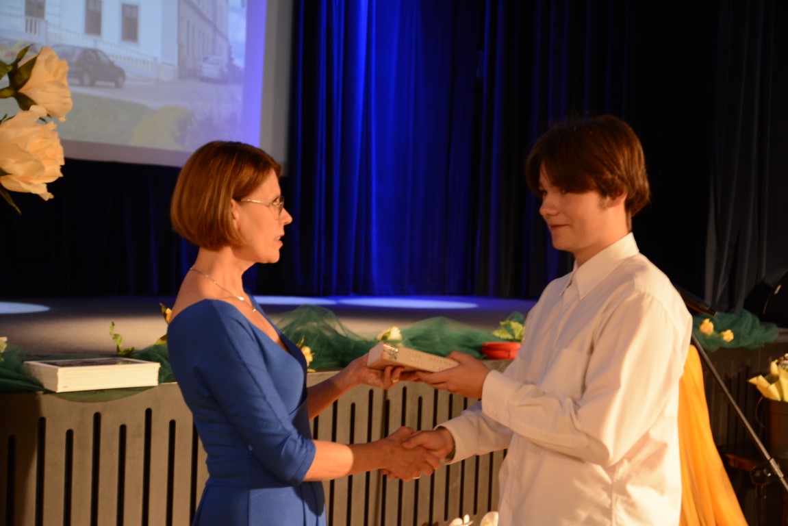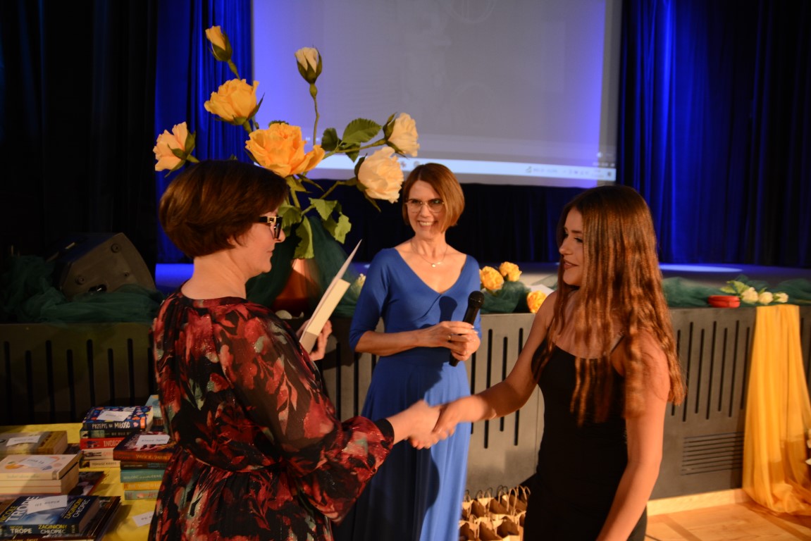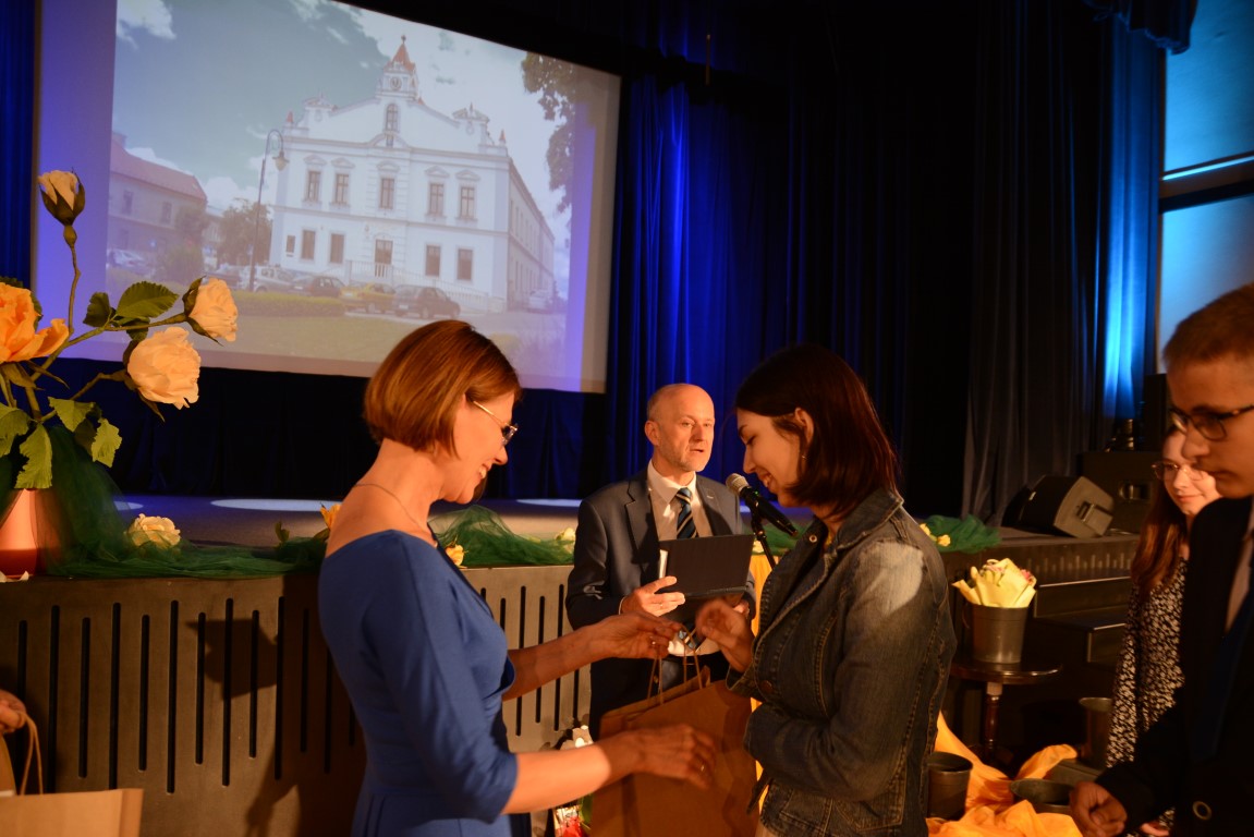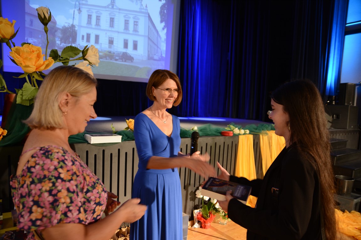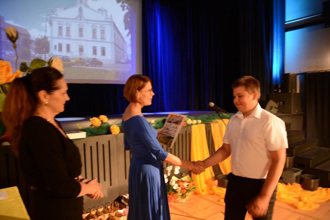 Następnie pani dyrektor wraz z wychowawcami wręczyła nagrody wyróżniającym się w mijającym roku szkolnym uczniom klas Technikum i Szkoły Branżowej oraz ogłosiła, że w bieżącym roku szkolnym kandydatem do stypendium Prezesa Rady Ministrów jest uczeń klasy 4TI Dominik Nowak.