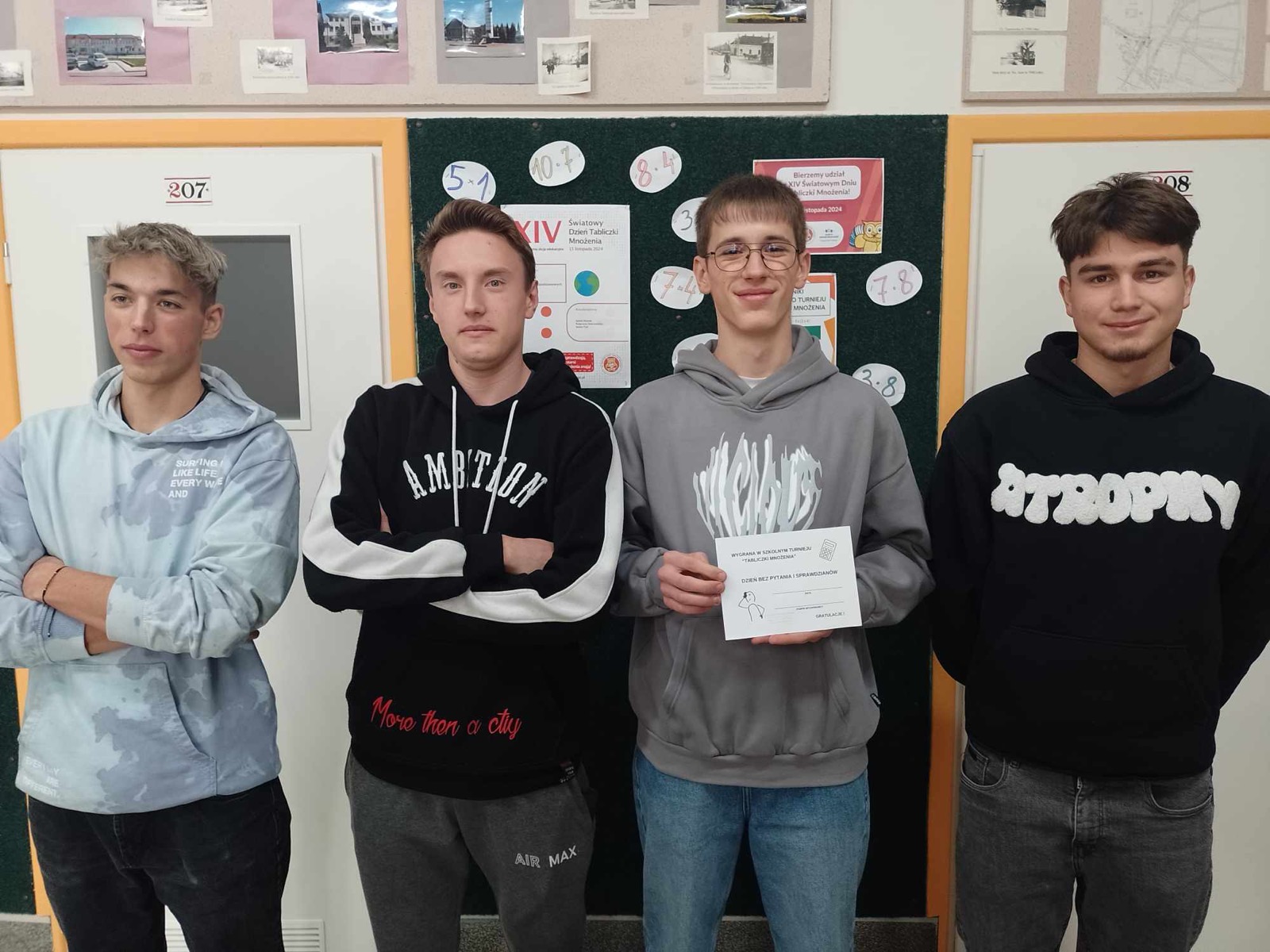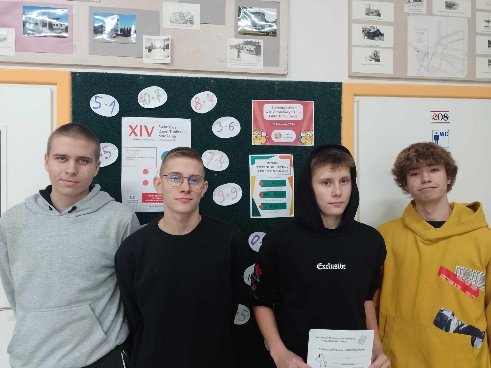 W Szkolnym Turnieju „TABLICZKI MNOŻENIA” w zmaganiach zespołowych wzięli udział przedstawiciele ośmiu klas 1a, 1b, 1TP, 2TGP, 2THI, 3TEP, 3TGH, 3TI.