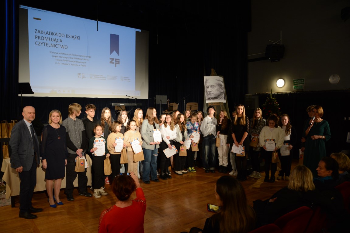 Konkurs skierowany był do uczniów ZSP w Żabnie oraz uczniów Szkół Podstawowych i wzięło w nim udział 42 osoby. Do konkursu zgłoszonych zostało 59 prac, które na posiedzeniu dnia 17 listopada 2023 r. zostały ocenione przez komisję artystyczną powołaną przez Organizatora w składzie: Kinga Schab – nauczyciel grafiki komputerowej – przewodnicząca jury, Agata Wajda-Tylek – nauczyciel plastyki, Sławomir Kurzydym – bibliotekarz. Biorąc pod uwagę estetykę wykonania zakładki, pomysłowość i oryginalność oraz zgodność z regulaminem konkursu jury przyznało nagrody i wyróżnienia: