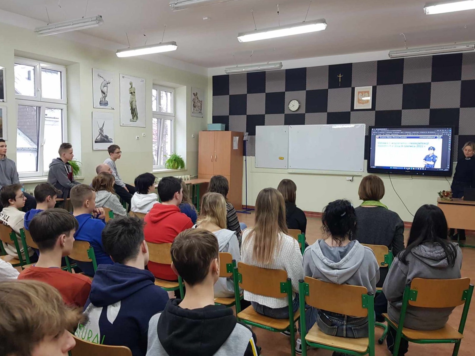 26 stycznia w ramach działań profilaktycznych, przy współpracy z Komendą Miejską Policji w Tarnowie, została przeprowadzona w szkole prelekcja na temat cyberprzemocy oraz odpowiedzialności karno- prawnej nieletnich.
