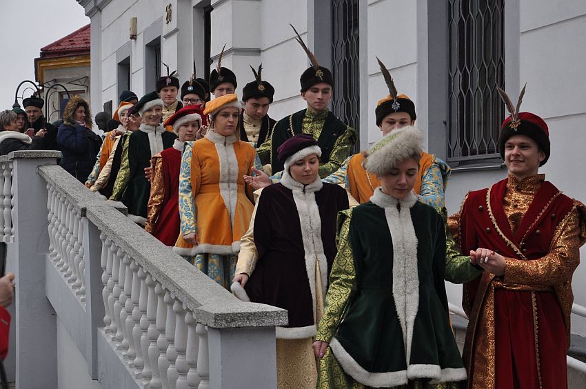 Orszak - w rytmie kolęd i pastorałek - przeszedł od Centrum Kultury do kościoła parafialnego. Uczestniczyli w nim licznie mieszkańcy Żabna i okolic - dzieci, młodzież, starsi. Na placu przed kościołem uczniowie naszej szkoły ubrani w piękne, staropolskie stroje zatańczyli poloneza.