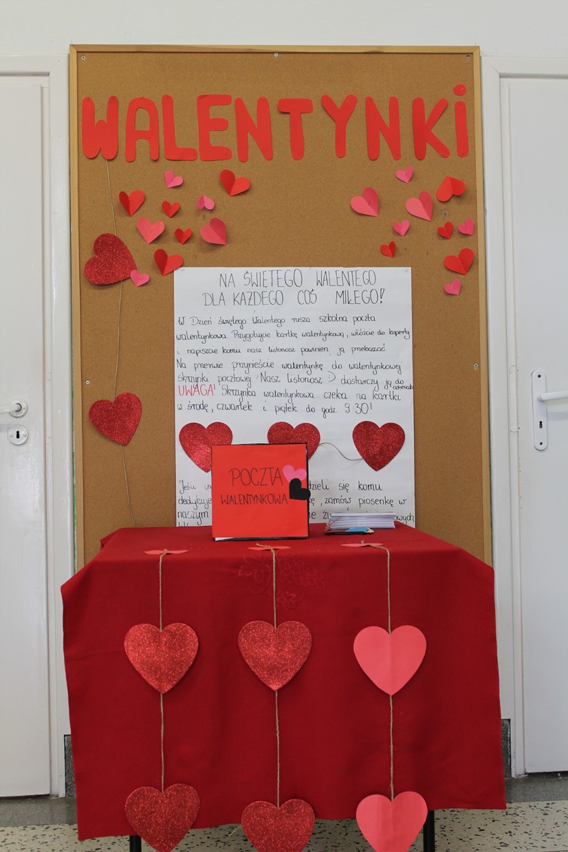 Samorząd Szkolny pod czujnym okiem opiekuna, pani Beaty Król zorganizował pocztę walentynkową. Na szkolnym korytarzu pojawiła się tajemnicza skrzynka z serduszkami. Można było do niej wrzucić walentynkowe kartki i przesłać w ten sposób wyrazy sympatii i przyjaźni. W piątek 14 lutego listonosz wraz z towarzyszącymi mu przedstawicielami Samorządu roznosił miłosną korespondencję adresatom. Walentynkowe kartki niewątpliwie sprawiły dużą radość obdarowanym.