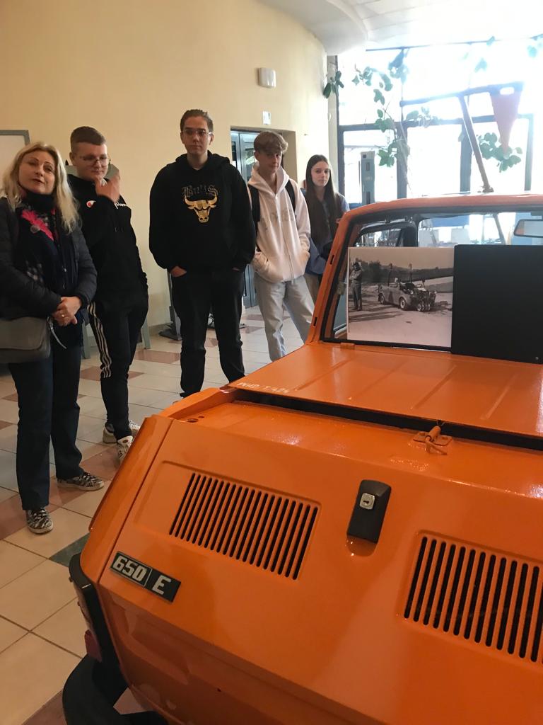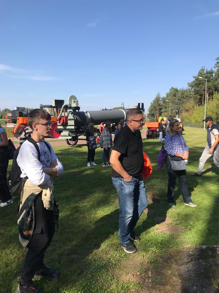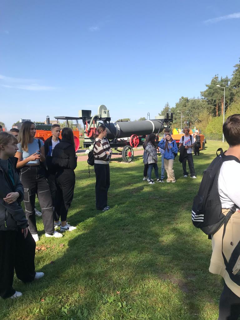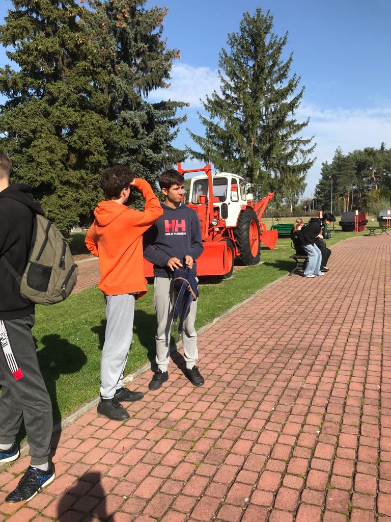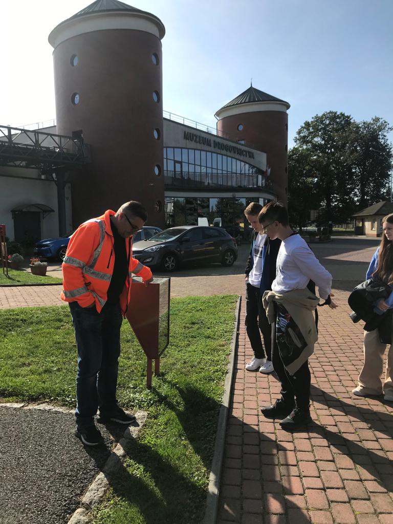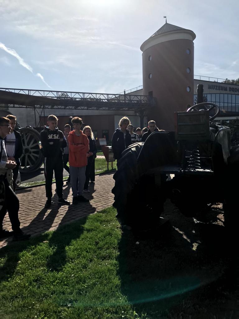 Następnie uczniowie odwiedzili Muzeum Drogownictwa w Szczucinie, gdzie po obejrzeniu filmu dokumentującego historię budowy dróg w Polsce oraz zgromadzonych w budynku eksponatów mieli możliwość, również dzięki ciepłej słonecznej pogodzie, zwiedzić otaczający muzeum skansen gdzie zgromadzono maszyny i urządzenia stosowane w drogownictwie od końca XIX wieku. Spacerując po spiralnych alejkach można było oglądać walce, ścinarki poboczy, kruszarki, pługi a także różne rodzaje nawierzchni drogowych, do których układania były wykorzystywane wystawiane maszyny.