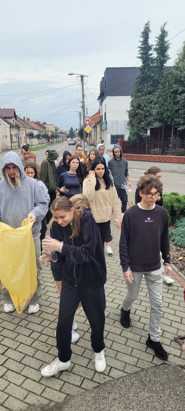 W miesiącu wrześniu 2024 roku uczniowie ZSP w Żabnie wzięli udział w akcji „Sprzątanie Świata”, w ramach realizacji programu projektu „Bądź EKO- kształtowanie postaw proekologicznych wśród uczniów V’, z inicjatywy Wydziału Edukacji Starostwa Powiatowego w Tarnowie. Uczniowie klasy 1a, 1TP, 2a, 3a, 2THI, 2TG pod opieką nauczycieli wychowania fizycznego- pani Anny Rygielskiej oraz Pani Lidii Szostak, uporządkowali tereny w pobliżu Hali Sportowej, stadionu sportowego Polan Żabno oraz cmentarza parafialnego.. W efekcie bardzo aktywnej i intensywnej pracy naszych uczniów, udało się zebrać liczne odpady, które następnie zostały przez nich odpowiednio posegregowane. Działania te mają na celu nie tylko pomóc naszemu środowisku, które w bezmyślny sposób jest degradowane przez człowieka, ale w wymiarze edukacji kształtują właściwą postawę proekologiczna oraz podnoszą świadomość młodzieży w zakresie prawidłowej segregacji odpadów. Przeprowadzane co roku akcje mają na celu, pokazanie mieszkańcom naszej gminy właściwych postaw w zakresie troski o środowisko, aby każdy z nas starał się nie wyrzucać śmieci i odpadów w przypadkowe miejsca, tylko do przeznaczonych do tego pojemników.