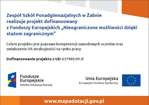Projekt „Nieograniczone możliwości dzięki stażom zagranicznym” jest priorytetowym programem do realizacji w naszej szkole. Otrzymał dofinansowanie z projektu „Ponadnarodowa mobilność uczniów i absolwentów oraz kadry kształcenia zawodowego” finansowanego z Programu Operacyjnego Wiedza Edukacja Rozwój.