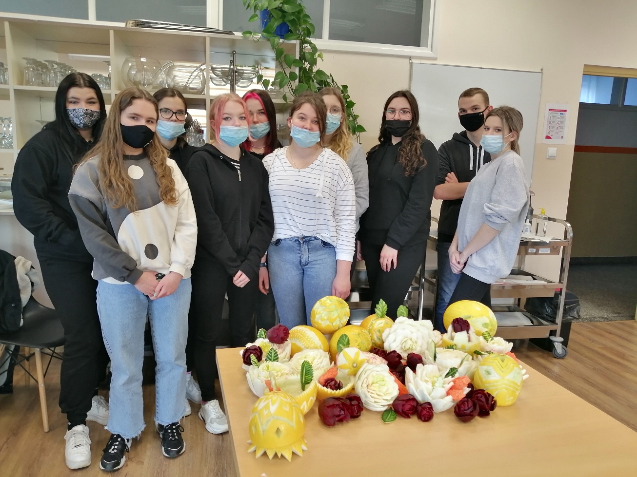 19 lutego br. grupa 19 uczniów technikum gastronomicznego ukończyła kurs Carvingu oraz kurs obsługi kasy kelnerskiej z POS. Kursy organizowane były w ramach projektu ,,Mistrzowie w zawodzie II”.