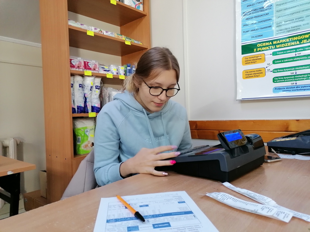 Kolejne szkolenia dla naszych uczniów, w ramach projektu „Mistrzowie w zawodzie II” zostały ukończone. Ośmioro uczniów i uczennic klasy III i IV TG szkoliło się z obsługi kasy fiskalnej.