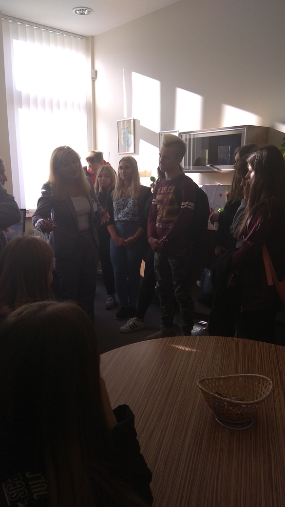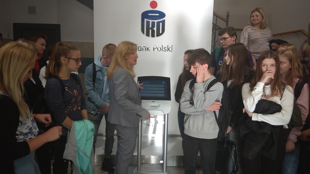 24 października 2019 r. grupa uczniów klasy I TE i II TH udała się na wizytę zawodoznawczą do PKO Bank Polski w Tarnowie. Uczniowie zostali powitani przez Panią Annę Nowakowską – Dyrektor Banku PKO BP w Tarnowie, która stała się jednocześnie naszym przewodnikiem.  Po kilku ciepłych słowach Pani Dyrektor zaprosiła młodzież do swojego gabinetu gdzie opowiedziała o swojej pracy, przybliżyła zasady korzystania z usług bankowych, zaprezentowała produkty, oferowane klientom przez bank. Przedstawiła również nowoczesne rozwiązania pozwalające na szybką i bezpieczną bankowość mobilną. Następnym punktem spotkania było zwiedzanie działów banku oraz zaobserwowanie pracy na stanowiskach bankowych.