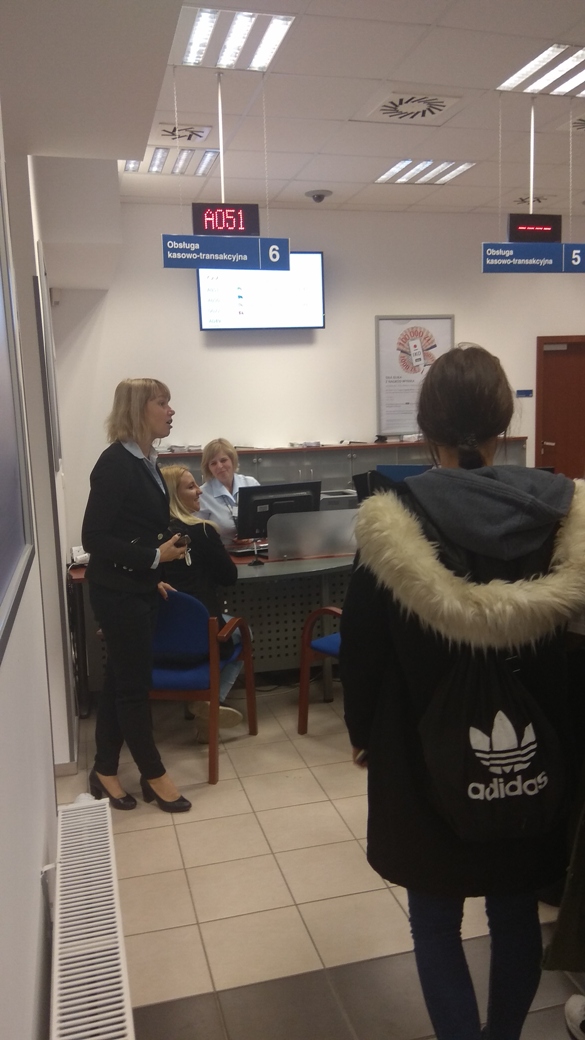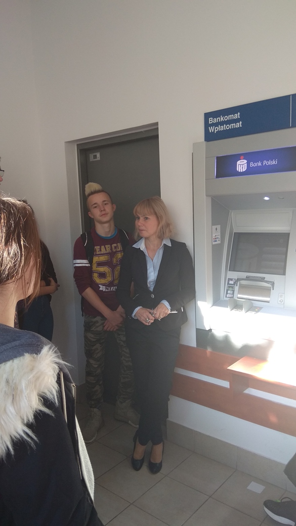 Podczas spotkania poruszone zostały  również zagadnienia odnoszące się do  korzystania z pożyczek, kredytów oraz zakładania lokat. Młodzież miała możliwość uczestniczyć w rozmowie z doradcą bankowym podczas zakładania konta. W trakcie wizyty swoją wiedzą dzieliła się Pani Magdalena Pabian – kierownik zespołu obsługi klienta, która m.in. przeszkoliła uczniów jak korzystać z wpłatomatu oraz opowiedziała o młodzieżowych kontach bankowych, bankowości internetowej, środkach i  kartach  płatniczych. Było to bardzo ciekawe doświadczenie.